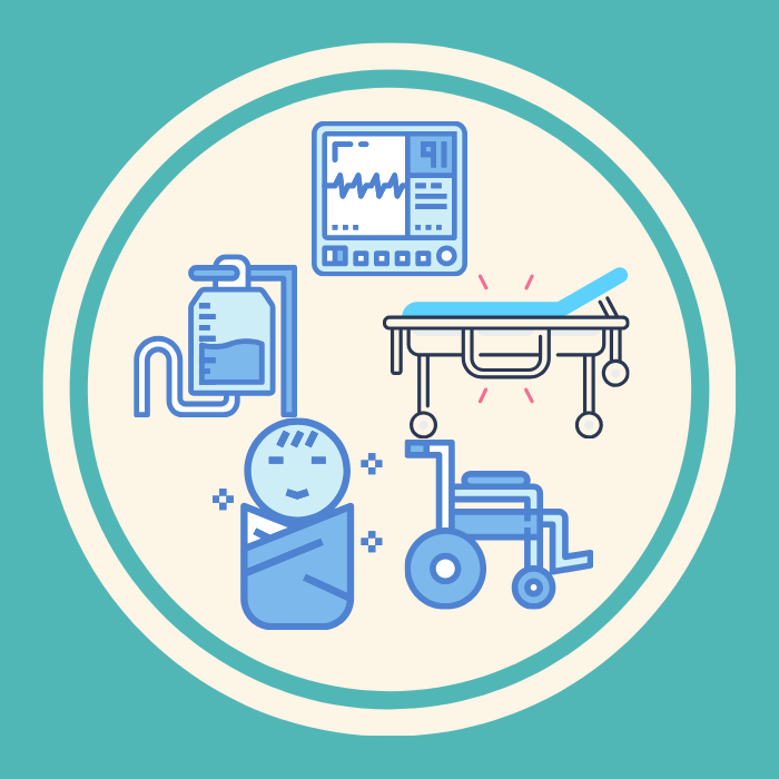 เพื่อรักษา ตรวจสอบ ประคับประคอง เช่น รถเข็น เตียงผู้ป่วย เครื่องวัดความดัน เครื่องวัดน้ำตาล