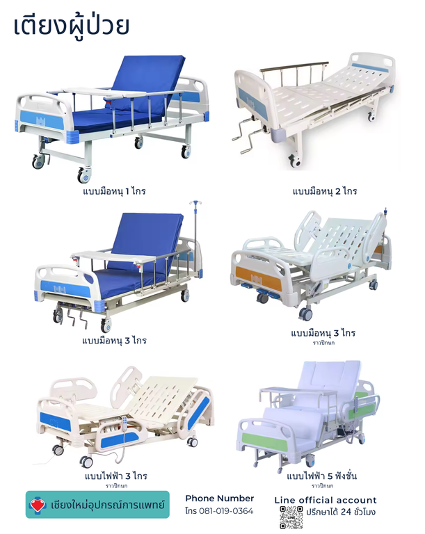 ● เตียงผู้ป่วย เตียงผู้สูงอายุ แบบมือหมุน 2 ไกร์ เตียง 3 ไกร์ และเตียงพยาบาล